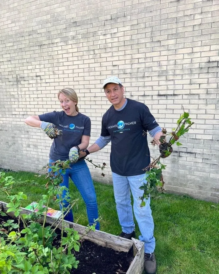 Our team here at Holmes and Palmer Orthodontics applies compassion, dedication, and knowledge to make a difference in as many lives as possible. We hope to extend our experience and reputation as a local orthodontic practice to help improve our community. Over the years, we have volunteered our time with local organizations including Mel Wolf Child Development Center, Sojourners, Ronald McDonald House, KVC Behavioral Health, Little Victories Animal Shelter, as well as many others. Our team does everything from gardening and cooking meals to playing with animals that need some extra love and attention.